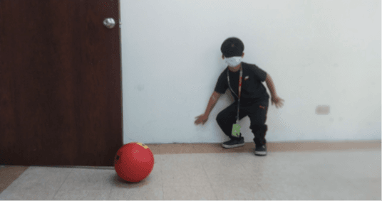 6. 視障「運動」體驗:參與者戴眼罩,聆聽門球的聲音來判斷球的位置,體驗視障者如何進行體育活動。