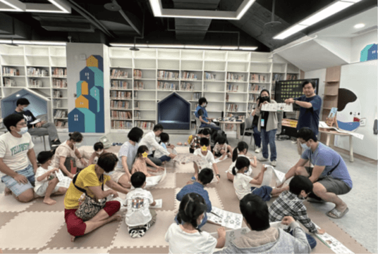 串聯閱讀角示範點,以永續發展主題圖書資料舉辦共融式閱讀推廣活動,結合手語及沉浸式體驗。112年度以永續發展教育入選圖書《114歲的新生》、《煙囪的故事》等,辦理6場共融式說故事活動及1場共融閱讀推廣講座,讓孩子開啟探索世界與享受閱讀的喜悅。