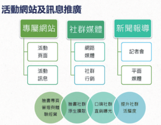 本案將網站及宣傳行銷分成四大區塊,一是本案專屬網站內容製作,二是透過記者會搭配公文進行推廣,三是結合臉書及IG等網路社群的傳播,四是進行食農教育電子書推廣,供各級學校進行食農教育使用,促進食農教育資源的廣泛應用。此外結合各公共圖書館的社區資源,將「慢讀好食刻」全國公共圖書館巡迴展訊息推廣。