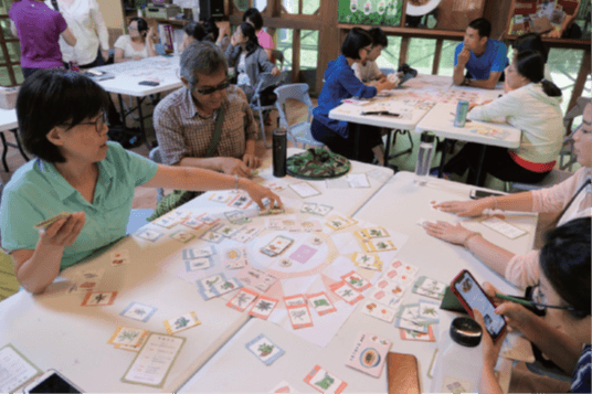 2. 桌遊與教具箱:設置「農場大叔的倉庫」食育教具,讓小朋友透過遊戲學習食物分類及其原型認知,增添趣味性。此外,透過「台灣糧食自給率」桌遊,強調糧食危機與永續飲食的重要性。