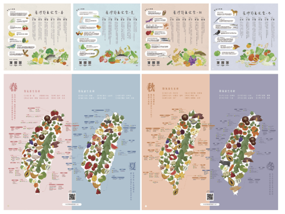 與農業部合作,收錄常見及常食用的食材,以插畫擬真繽紛色彩呈現臺灣在地農產品,當令蔬果、漁產、產地。按節氣體驗,四季感知,按照四季節氣呈現臺灣當令之各地蔬果農漁產,並附上農村文化及農產品小知識。讓民眾進一步認識臺灣農漁產的豐富性以及產地來源,讓民眾食得安心、吃得健康。觀眾可以探索當令食材,學習各種食農小知識,體驗臺灣農漁產的豐富性。期待透過展覽結合食農教育達成寓教於樂並推廣臺灣農漁產。
