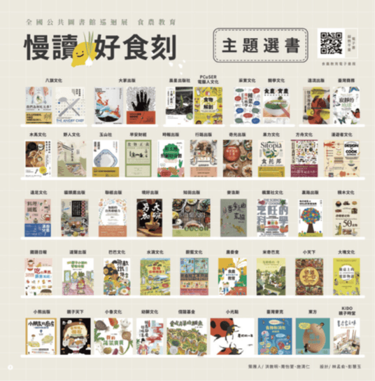 隨著《食農教育法》的施行,食農教育正式走進全民的生活。為了將這份教育轉化成一種按節氣體驗的素養能力,國立公共資訊圖書館策劃「慢讀好食刻」全國公共圖書館巡迴展,結合農業部的「臺灣節氣食堂展」,讓大家按照四季的節氣來了解臺灣各地的蔬果農漁產,感受臺灣農漁產的豐富性與認識產地來源。此外,還有結合灃食基金會的「良食圖譜海報展」,將飲食知識轉化為視覺學習指南,讓大家更加輕鬆地了解飲食的重要性與來源。並搭配觀樹基金會「餐桌上拯救未來」食農講座。