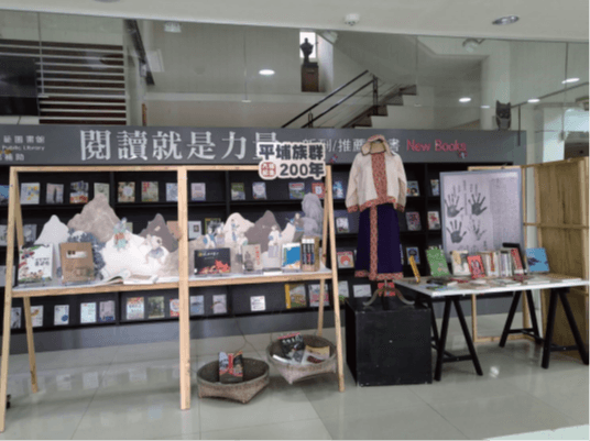 為了讓各年齡層讀者認識埔里盆地的平埔族群文化,規劃辦理主題書展。展出與族群歷史相關的文史書籍、創作繪本、傳統服飾、生活用品等器具,以貼近日常生活的方式,讓讀者更具體的認識早期平埔族群的生活文化。