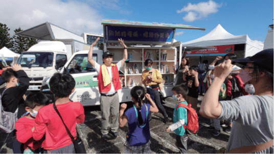 112年度並推出三大戶外主題推廣活動,5月5日行動書車配合母親節孝親奉茶活動,吸引近500名師生及家長參與,獲得民眾熱烈迴響。另橫向連結縣府文化觀光局的繪本成果,並以《窯裡的祕密》及《泥土大變身》做為鄉土推廣教材,認識家鄉文化。另外,藉助巫素琪老師(巫婆老師)、徐慧蓉老師(咪咪老師)的劇場經驗,採多元化、多層次的朗讀方式,搭配學習單並於次月交換流通,提供偏鄉學子與社區民眾多元化閱讀學習資源。