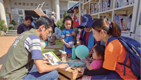 111年獲贈即啟動「愛閱校園、共讀書香」活動前進和鄉鎮市公共圖書館、中小學及幼教體系互相配合,共伴偏遠獅潭鄉、南庄鄉、泰安鄉等偏鄉中小學計9場次,112年提升至30場次。